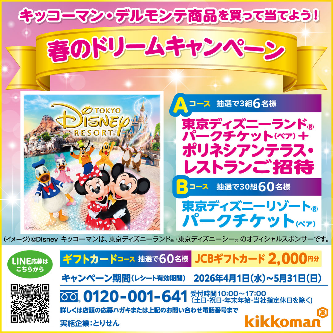 キッコーマン・デルモンテ商品を買って当てよう!春のドリームキャンペーン