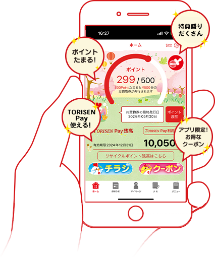 ポイントもTORISEN Pay(電子マネー)のお支払いもアプリで!
