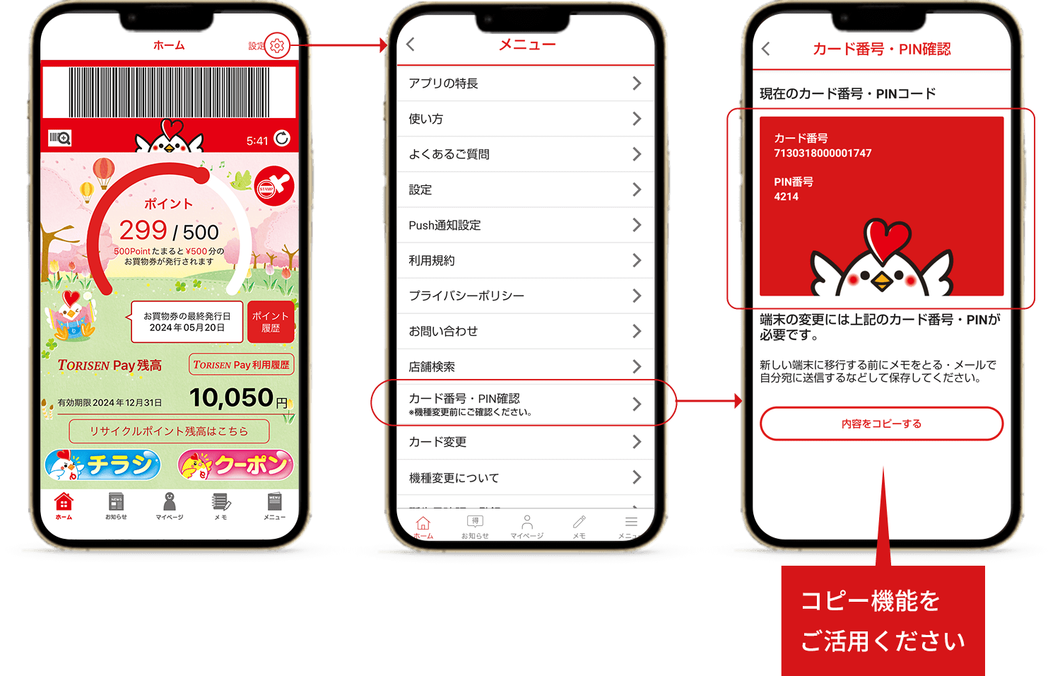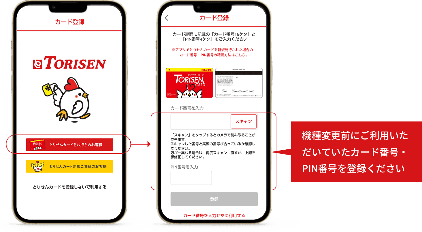 ※お使いのとりせんカードのカード番号・PIN番号を紛失されますと引き継ぎができません。