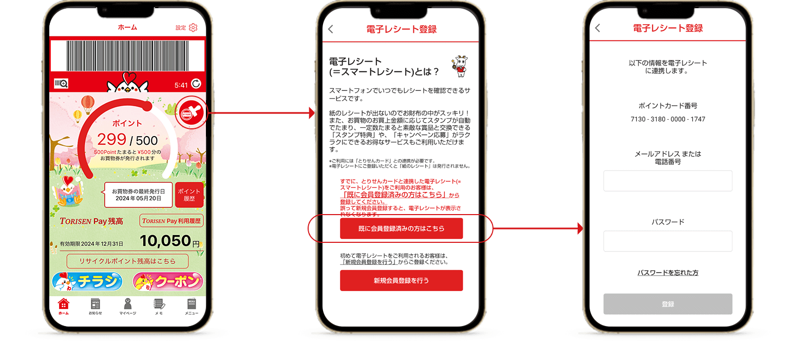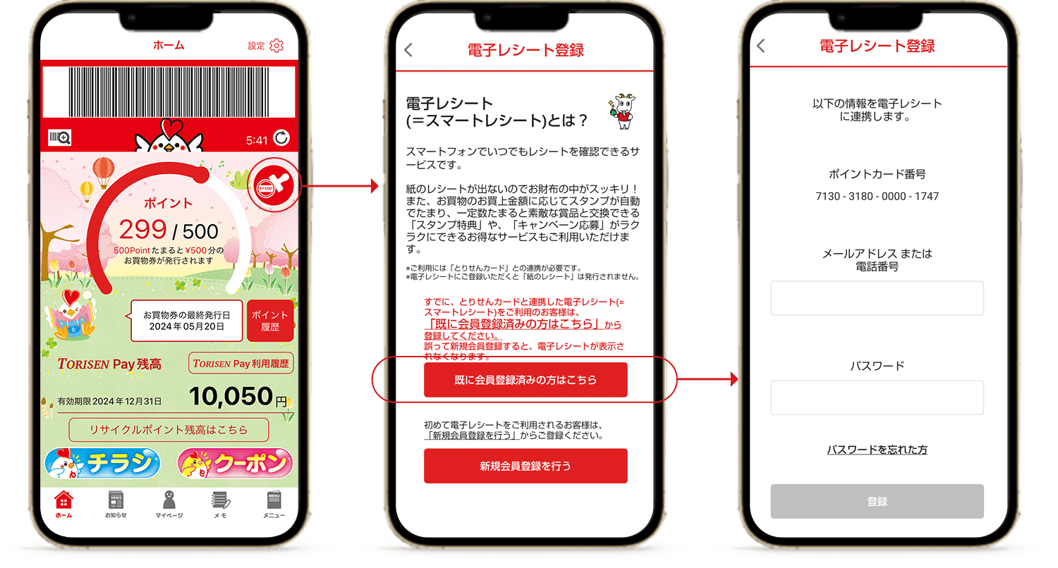 ※誤って「新規会員登録」をしてしまうと、電子レシートが表示されませんのでご注意ください。