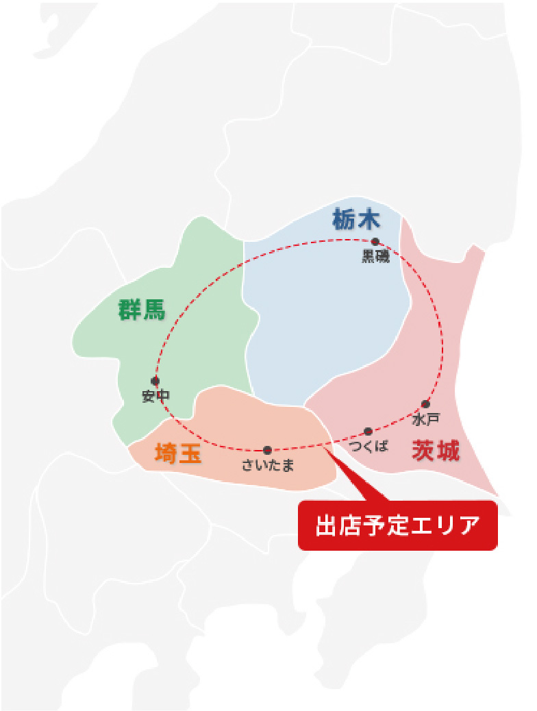 群馬県・栃木県・埼玉県・茨城県を出店範囲としています。